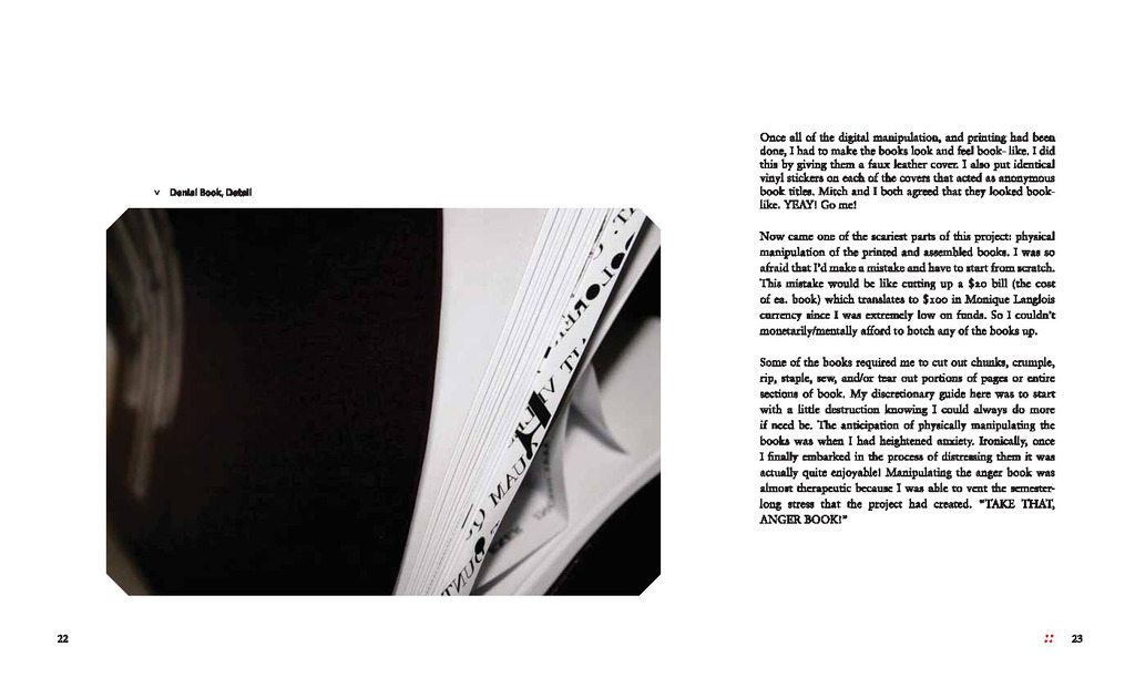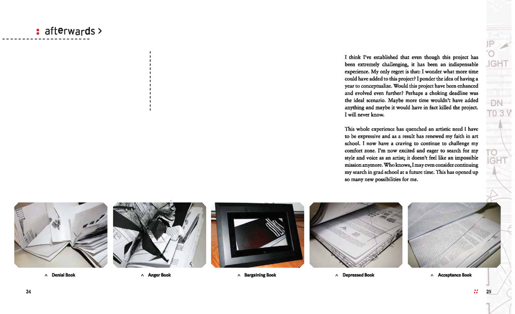A highly conceptual book design project where the main focus became describing the process of creating an emotive series of books. (The series of five books were physically experiencing the five stages of grief).